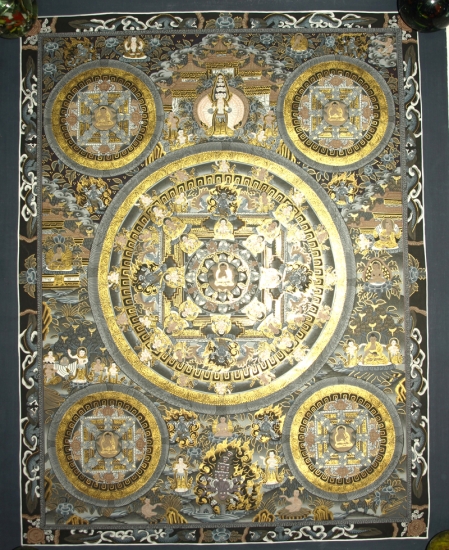 Mandala, literally meaning a circle, is tantric meditation device. It is a visual aid for concentration and introversive meditation leading to the attainment of insights and to activation forces culminating in ‘siddhi’ supernaturel forces. The Mandala graphic representation of the process. It is not only theoretical but practical as an operation scheme involving a clear plan practical realization of the process within oneself. It becomes as instrument (Yantra). There are many types of Mandala depending on nature of the central deity. The first Mandala was designed with dhyani Buddha in the centre. The manual represents palace of purity, a magic sphere cleaned of spiritual obstacles and impurities. The square of the ‘sacred palace’ proper is enclosed in multiple circles of flame, vajra, cemeteries (appears only wrathful deity), lotus, then the inner square to reach of the deity of the Mandala. The Dalai Lama explain that the image of Mandala is said to extremely profound because meditation on it serves as an antidote quickly eradicating the obstruction to liberation and obstruction to omniscience.